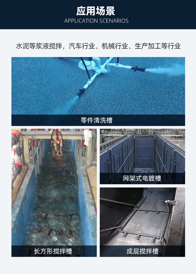 液體中蝕刻、液體中清洗、電鍍液攪拌、槽內液體攪拌等。